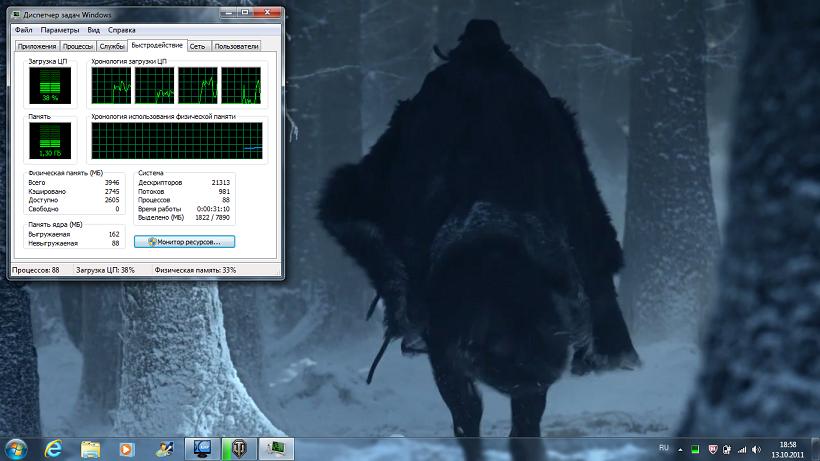 Пока с внешнего винчестера скачиваются все необходимые для теста программы, мы решили посмотреть насколько загрузится процессор одновременно